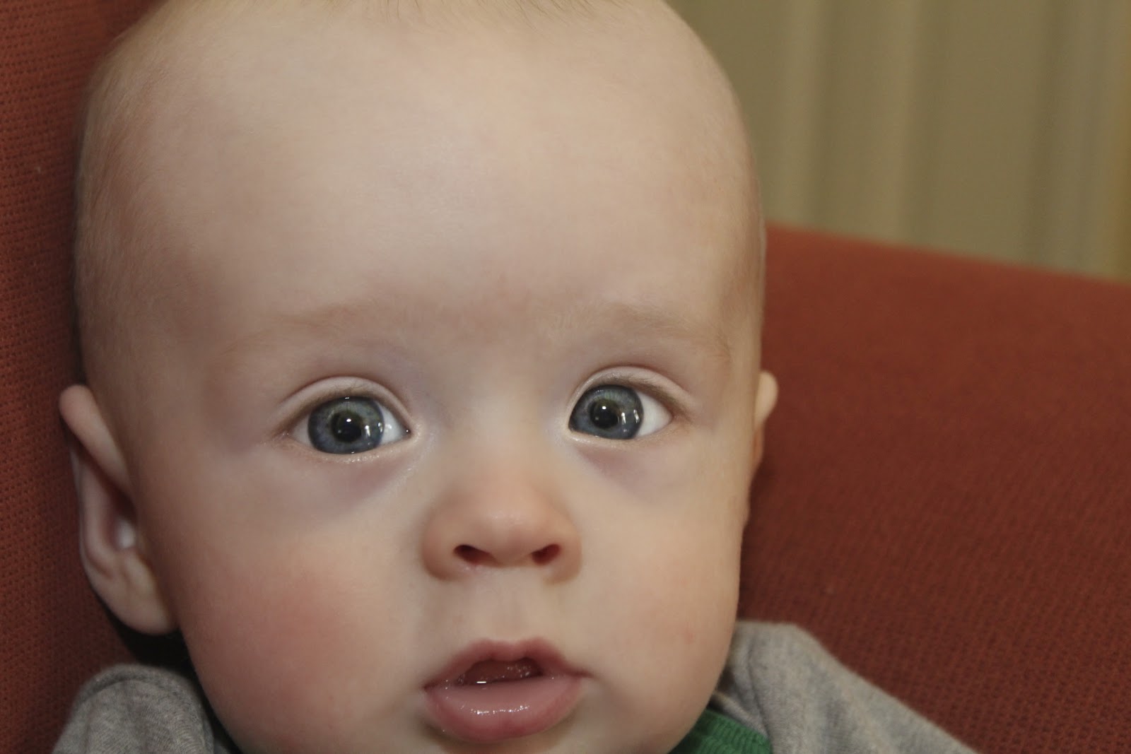 He is talking up a storm. I absolutely love to hear his babbling conversations. I would love to know what he is thinking.